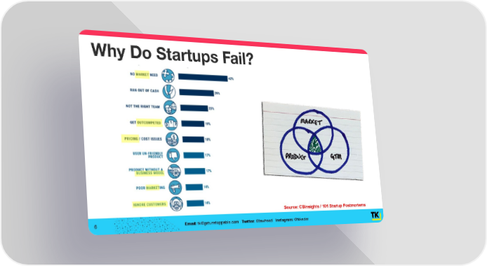 Unstoppable Startup Strategy Guide Page 5 Page 7Why Do Startups Fail? Source: CBInsights / 101 Startup Postmortems 6 Email: [email protected] Twitter: @tawheed Instagram: @tkkader